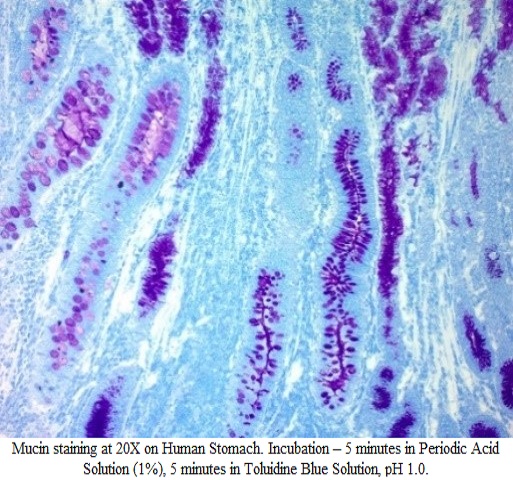 | New! Glycogen, Elastin, Mucin Stain Kit This stain kit utilizes a sulfation procedure and Toluidine Blue O to give specific metachromatic staining of Glycogen, Elastin, and Mucin (acidic and neutral) in formalin-fixed paraffin-embedded sections. Similar methods have previously been studied and referenced as Aldehyde Bisulfite Toluidine (ABT) and Permanganate Bisulfite Toluidine (PBT) staining. Glycogen may be visualized with a contrasting background as an improvement upon PAS staining. Learn More Click on image to enlarge |