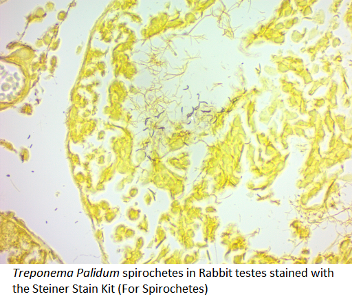 | Steiner Stain Kit (For Spirochetes) The Steiner Stain Kit (For Spirochetes) is designed for demonstrating Fungi, Helicobacter Pylori, Legionella pneumophila, and Spirochete infected tissue. Kit may be used on formalin fixed, paraffin-embedded tissue sections. Spirochetes: Black to Brown Helicobactor Pylori: Black to Brown Fungi: Black to Brown Legionella pneumophila: Black to Brown Background: Yellow to Tan Learn More Click on image to enlarge |