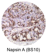 Napsin A is expressed in type II pneumocytes and in adenocarcinomas of lung. The high specificity expression of napsin A in adenocarcinomas of lung is useful to distinguish primary lung adenocarcinomas from adenocarcinomas of other organs.